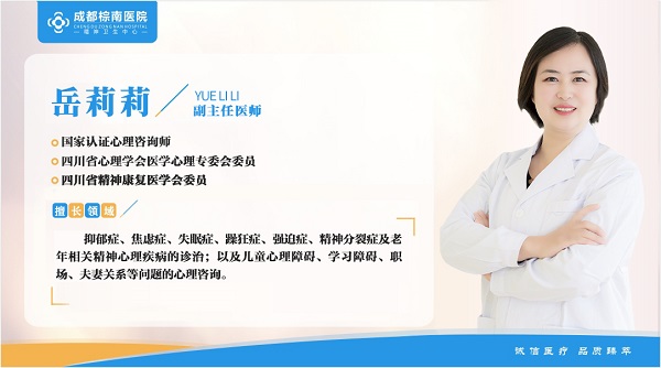 摘要岳莉莉 医生介绍 2003年毕业于四川大学华西医院,国家级心理咨询师,长期从事精神病学、精神卫生学临床、教学、科研工作。擅长领域:心身医学(主要涉及抑郁障碍、焦虑症、惊恐