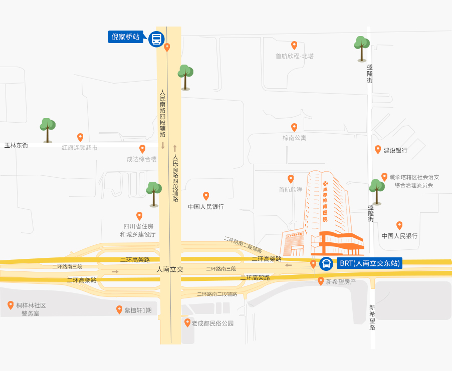 医院地址:成都市二环路南二段19号(人南立交东站)