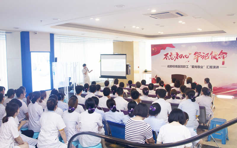 随后,吴晓蓉院长在发言中指出,建院近20年以来,我院始终坚持“以病人为中心,以医疗为核心,以服务为根本,不断提升医疗服务能力,推进医院持续健康发展。”的办院宗旨。始终坚持用红色精神引领党务和企业文化建设,发挥科主任传帮带作用,让优秀的党建文化、企业文化得以渗透、传承。时刻提醒员工关注时事、了解我们身处的时代与环境,将“爱国爱院爱家爱人民,积极奋发向上,饱含工作激情”的信念铭刻于心。